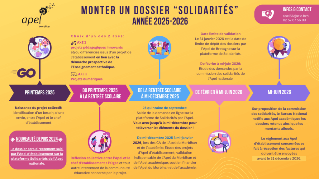 L’ensemble du mouvement des Apel reverse chaque année près de 700 000 euros pour accompagner les projets pédagogiques des établissements dans lesquels sont présents des parents Apel. L’Apel nationale apporte sa part à travers l’appel à projets annuel de la commission des solidarités, placée sous la responsabilité de Christian Detroisien, conseiller administrateur du Bureau national.