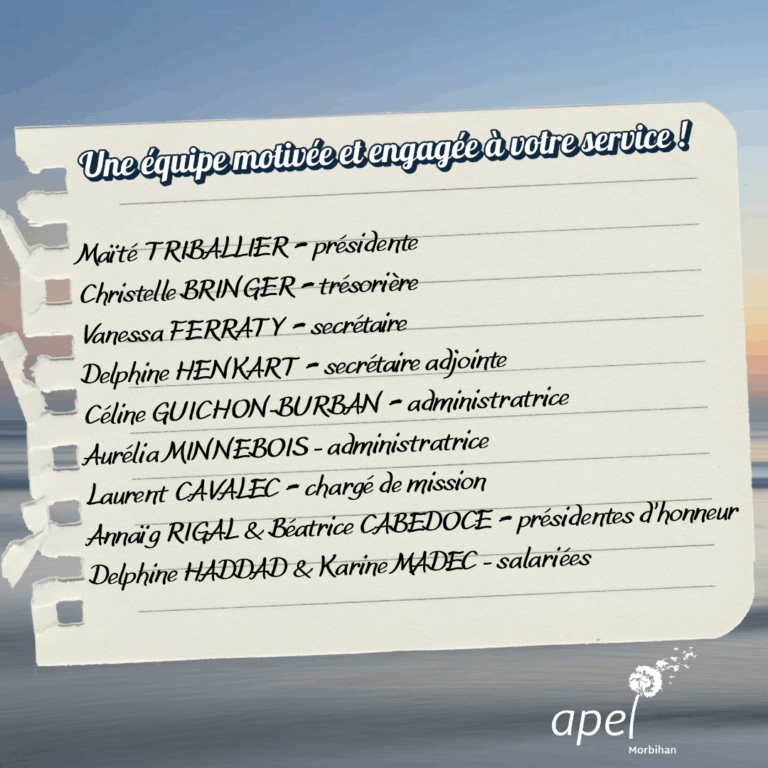 - la communication auprès des équipes Apel et partenaires de l’Apel56